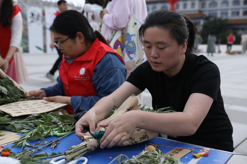 DIY體驗(yàn)區(qū)熱鬧非凡,五彩繩、香囊、艾葉花束、艾草棒等材料應(yīng)有盡有,員工自由選擇心儀的制作項(xiàng)目,親手打造出獨(dú)具端午特色的紀(jì)念品,為家人和朋友驅(qū)邪納福、連接好運(yùn)。