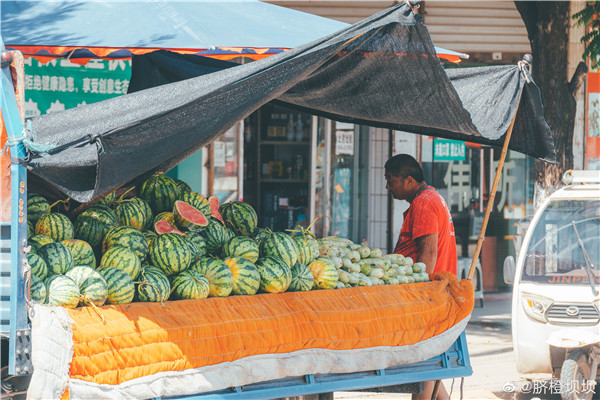 夏日陽光下,長滿雜草野花的小巷,鋪上玻璃渣的紅磚墻。拖拉機盛滿的西瓜,小巷里齲齲獨行的老人。看到這些,感覺好像回到了兒時充滿蟬鳴聲的夏天。來源:臍橙壩壩
